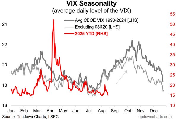 This week: monthly chart, technical check, VIX and credit spreads seasonality, awful Augusts, tech funds milestone, tech weights, electricity breakout…