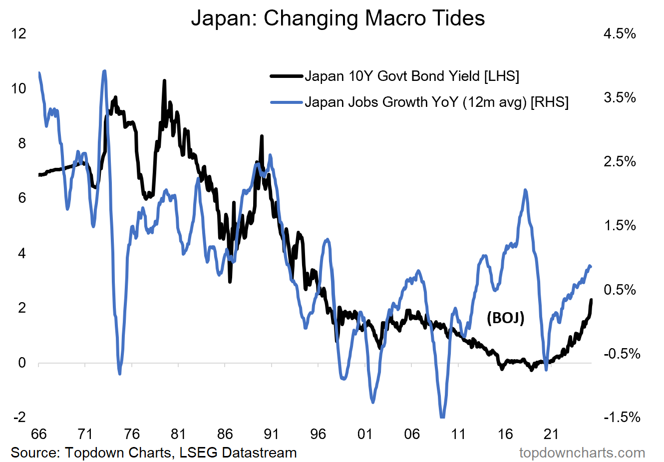 6. Japan’s Macro Tides: the thing is it’s not just about BOJ policy, it’s also a reflection of basically a macro breakout in Japan. They have shaken-off the stagnation and deflation of the previous couple-decades, and are now seeing a major upturn in nominal growth. This has meant great things for Japanese equities, but also means a reality of a new normal higher-for-longer dynamic playing out in the Japanese government bond market.
