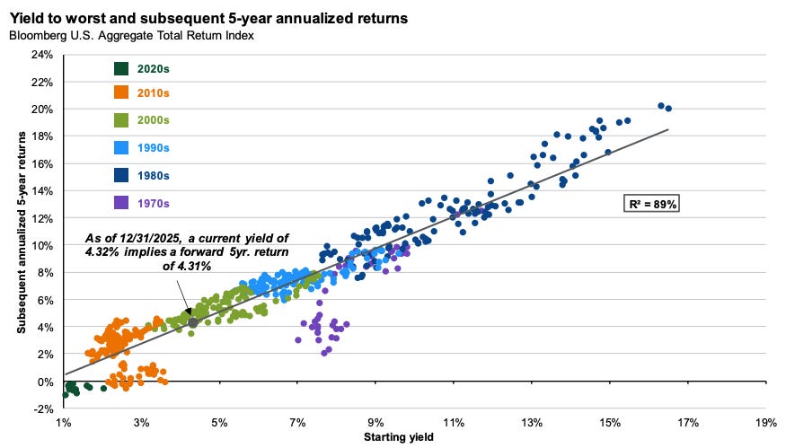 (also, n.b. on this one I would point out that while a 4% predicted return for bonds is not great in absolute terms… in certain environments you’d rather take a small positive than a big negative — which again goes to the point about the value of bonds in diversification and asset allocation)