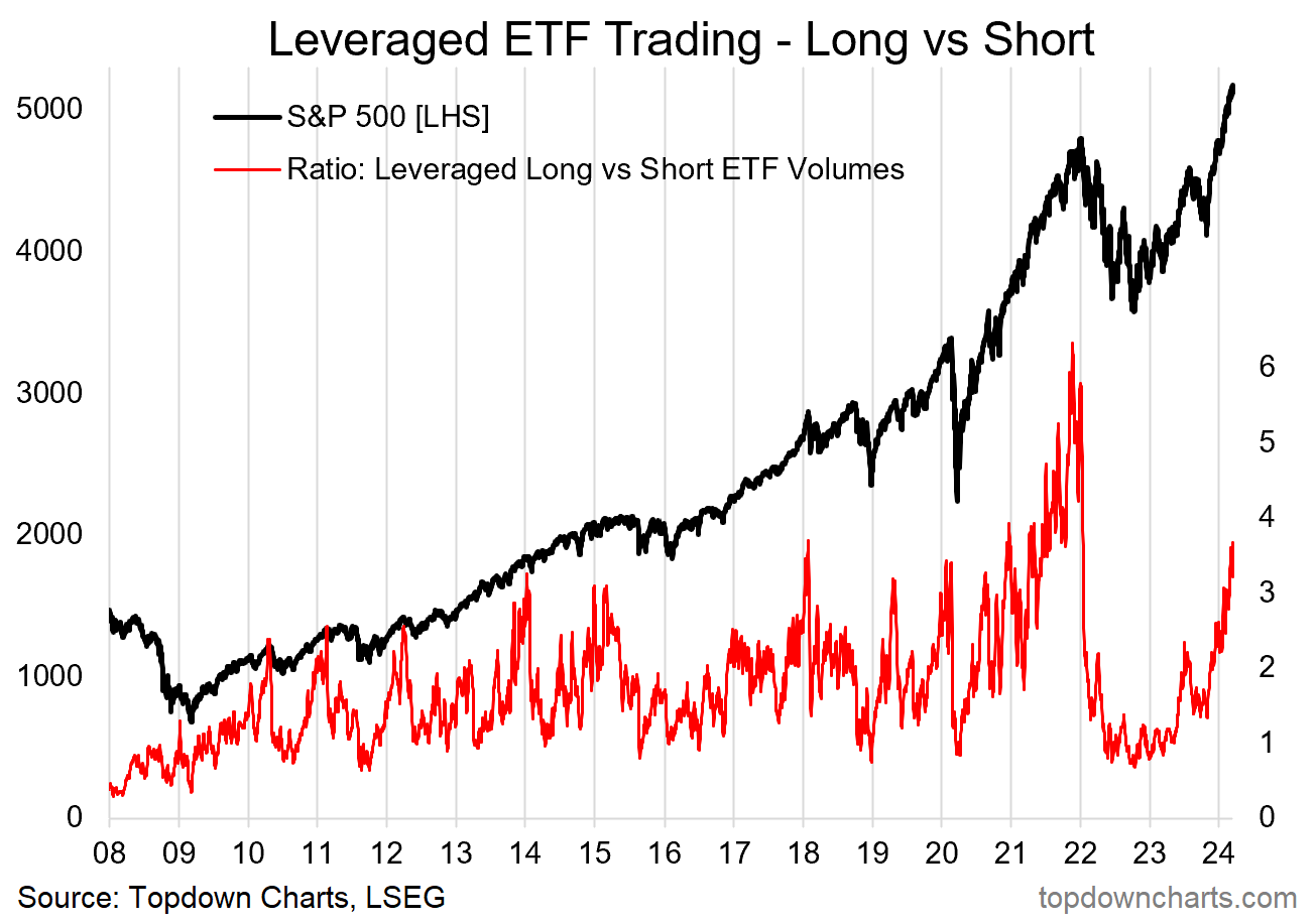 4. Speculative Frenzy: Trading activity in leveraged long vs short US equity ETFs has reached frenzied levels — at this point one of two paths lie ahead: either a repeat of the pandemic stimulus/liquidity-fueled bubble of 2021, or the market takes a short-term breather.