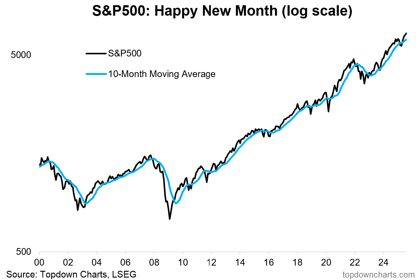 1. Happy New Month! The S&P 500 closed up +1.9% in August (vs +2.5% for the equal-weighted S&P500); placing it up +9.8% YTD (+10.8% including dividends) vs +7.4% equal-weighted (8.7% incl. divs). This marks its 4th monthly gain in a row, and the index remains comfortably above its 10-month (~200day) moving average. Looks good.