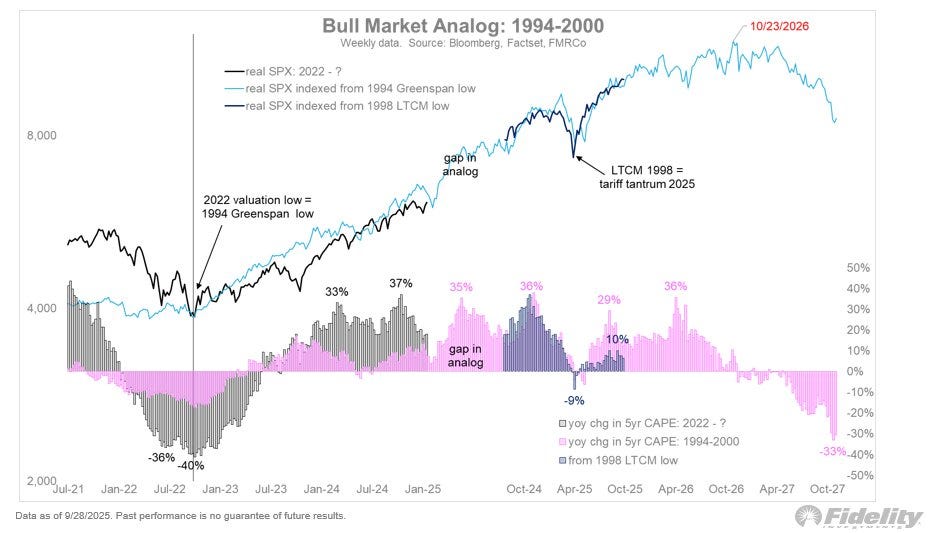 3. Bull Market 1990’s Analogs: On the bullish side, many have been highlighting the 1990’s bull market analogs, and there sure does seem to be some similarities on first glance, but also many differences (good and bad) in terms of macro, value, rates, earnings, tech cycles, etc. Certainly something to think about in terms of what could be possible.