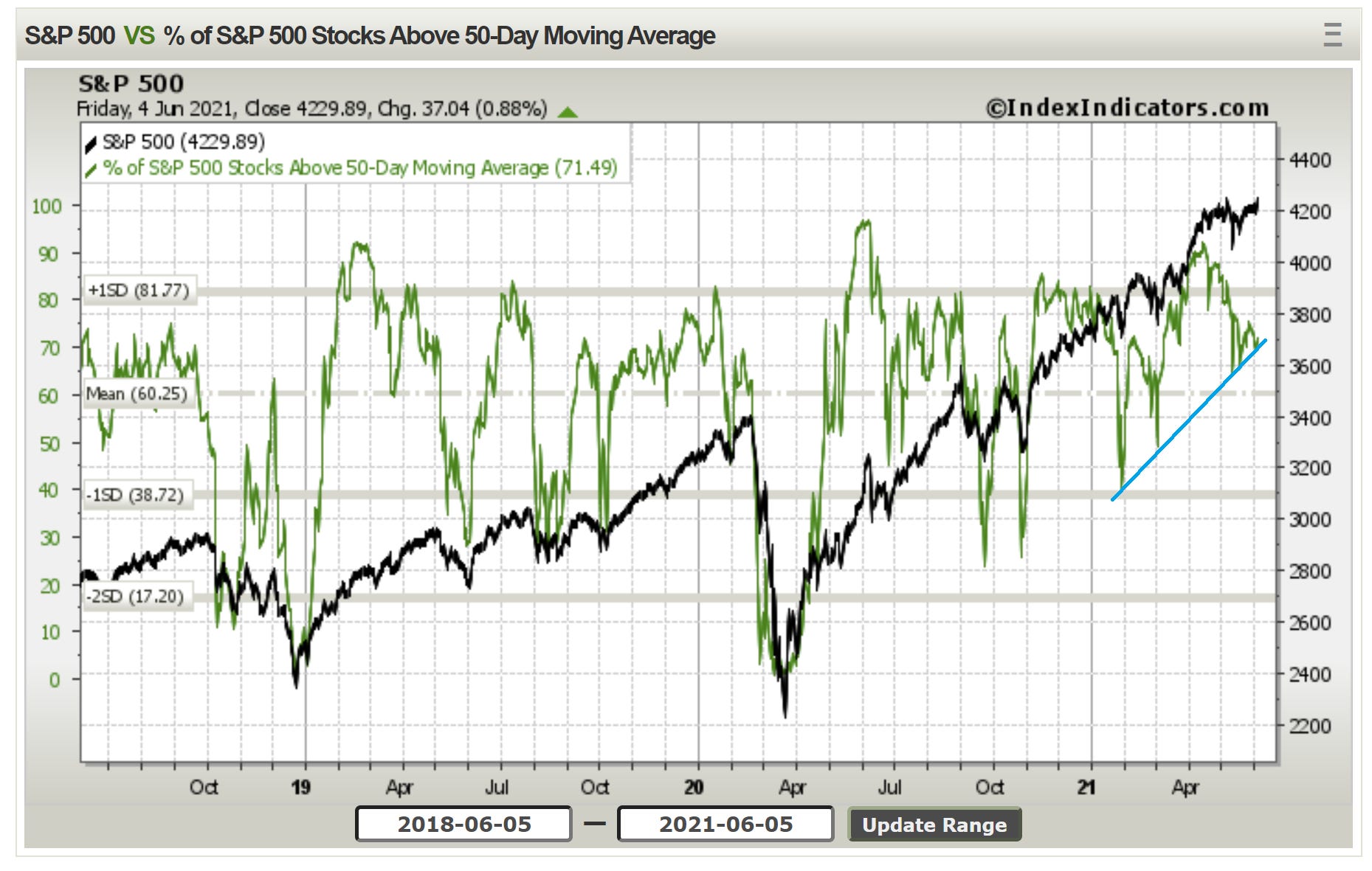 1. S&P500 50-day Moving Average Breadth: Another test and bounce from that arbitrarily drawn trendline... onwards and upwards?
