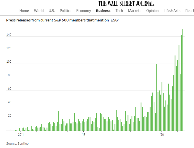 9. ESG to the moon! Mentions by S&P500 companies of ESG — there is definitely a movement here, and that probably means a real impact on market pricing.