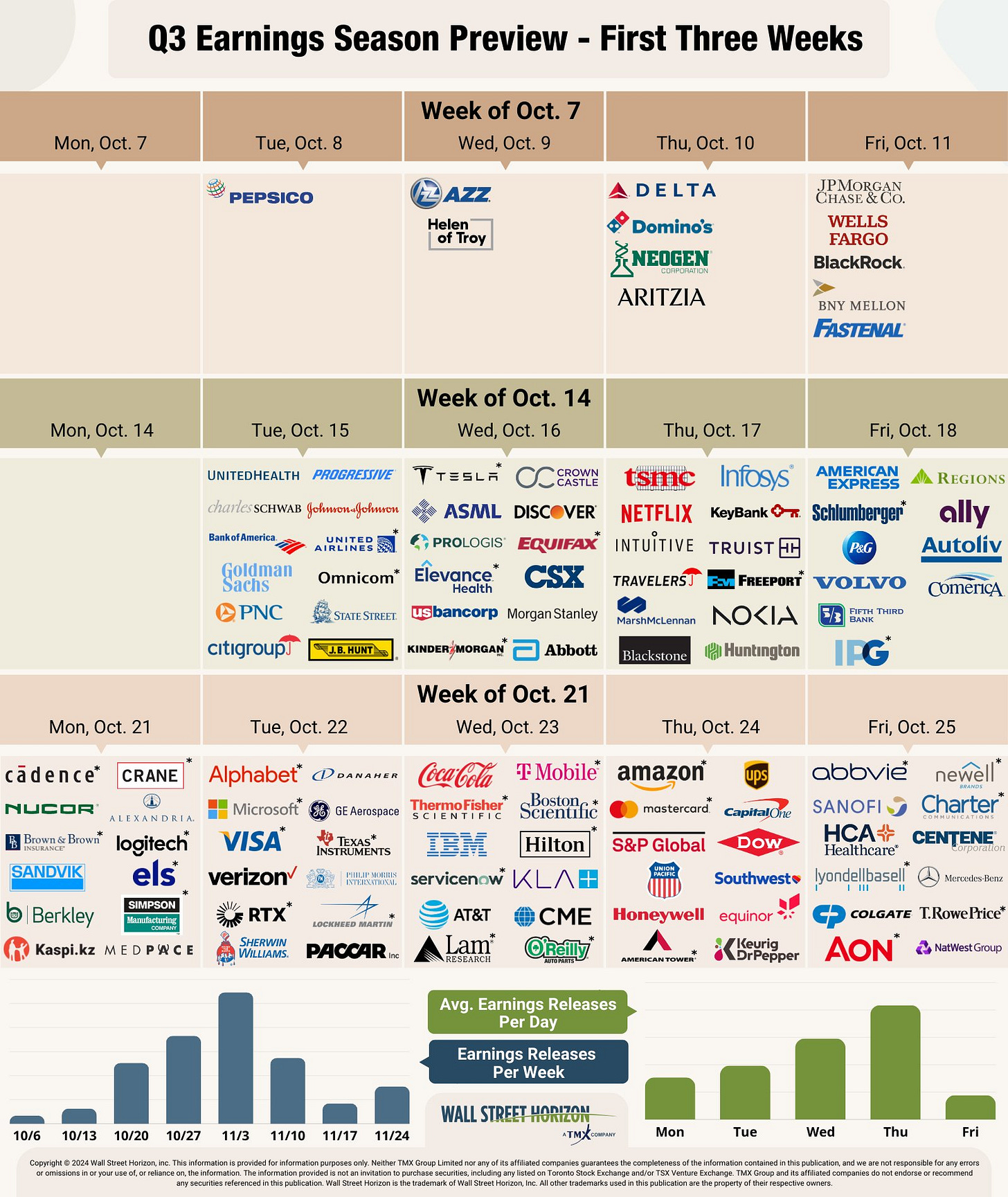 3. Earnings Season: Meanwhile, earnings season is set to kick-off next week, with Friday’s financials (JPM, WFC, BLK,BK) potentially setting the tone for what to expect with the Q3 reports. If the Fed is right in its assessment that the economy is losing momentum, we might see some disappointments. But we likely won’t get the full picture until later in October.